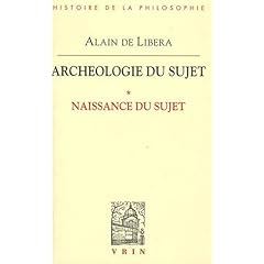 先の『空虚な参照』に続き、アラン・ド・リベラの『主体の考古学1–主体の誕生』(Alain de Libera, “Archéologie du sujet I — Naissance du sujet”, Vrin, 2007)を読み始める。すでに2巻目も昨秋刊行されているし、まだ続くようで、近年のド・リベラ哲学の主著ということになるのかしら。古代にはなかった「主体概念」が、中世のたとえばアヴェロエスの「思考するのは知性だ」といった議論を経て、いかにデカルトに着地することになるのかを追うというなかなか壮大な試み。まだやっと1巻の4分1(第一章の途中)まで眼を通したところだけれど、前著よりもとっつきやすいというか、なかなか読ませるものがある。第一章は全体の問題提起だけれど、大きなポイントは「付与的主体」と「内在的主体」という図式的対立とその転換を、どのように整理するかということにあるようだ。これに「呼称の主体」「行為の主体」といった区分が絡んで四つ巴になるらしい。すでにしてアウグスティヌスの立場(人間の魂に「主体」といった概念を適用するのは冒瀆的であるとした)や、トマスの議論(感覚的操作の「原理」としての魂と、操作の「主体」としての身体=魂の複合体)が、近代的意味での主体からほど遠いことが強調されたりもしている。ふむふむ、具体的な展開が実に楽しみ(笑)。